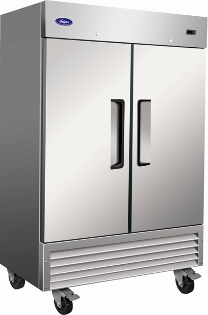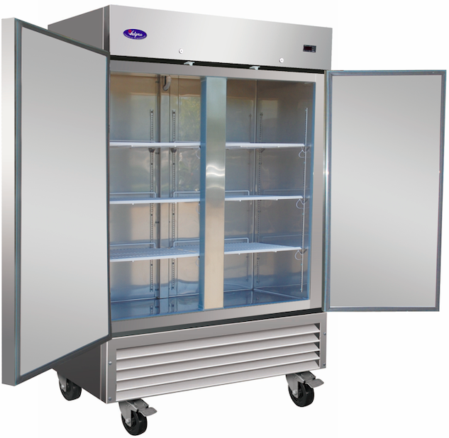 Interior stainless steel coved corner floor with white ABS sides and door backs